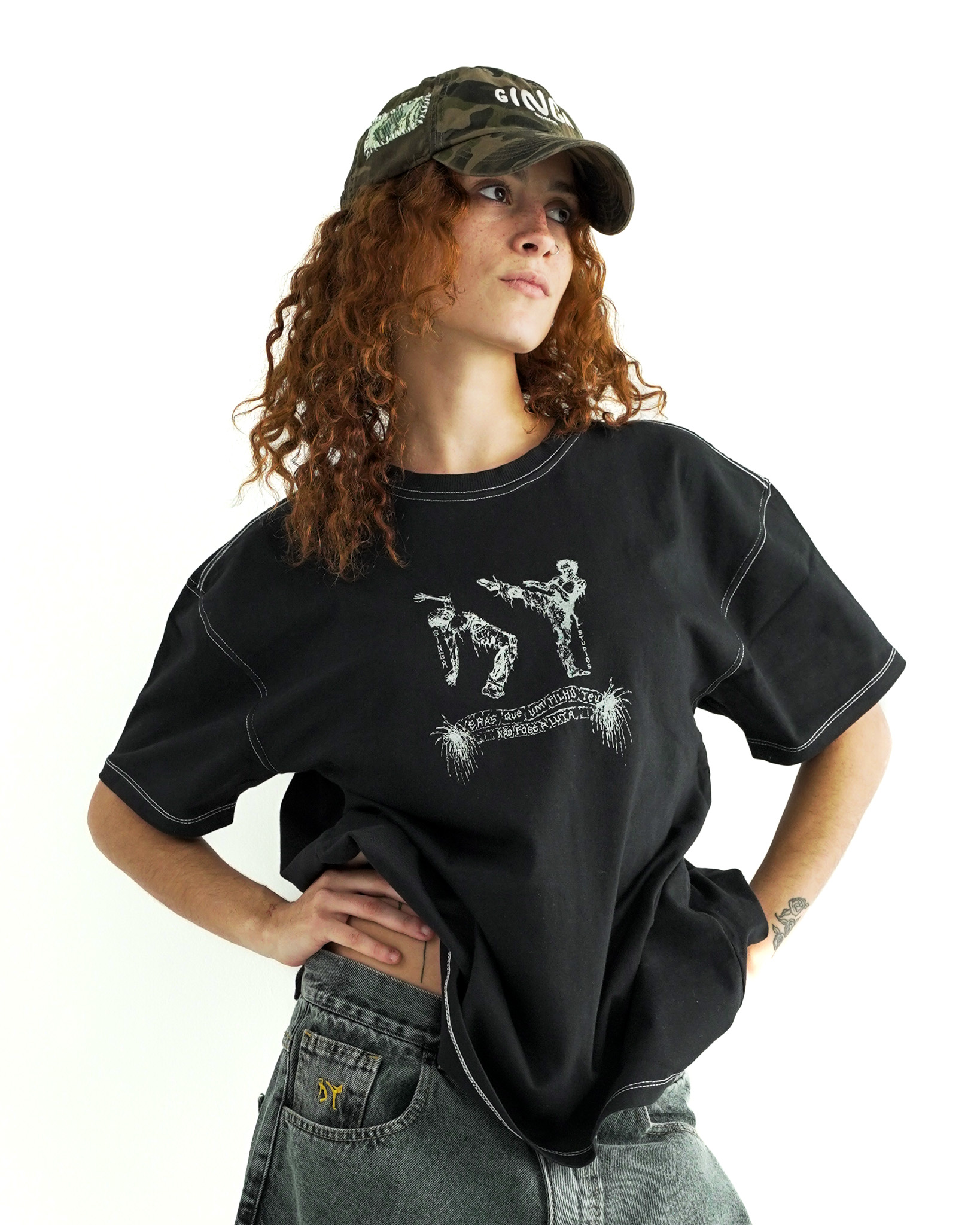 PEDRO FERNANDES é um tatuador carioca conhecido na cena underground de skate do Rio e São Paulo. Ele também é pintor e designer de moda experimental. Seu estilo cabreiro, inspirado na energia bruta do Metal e outros subgêneros do Rock, ganha vida em duas T-shirts exclusivas. “BERIMBAU” e “CAPOEIRISTAS”.